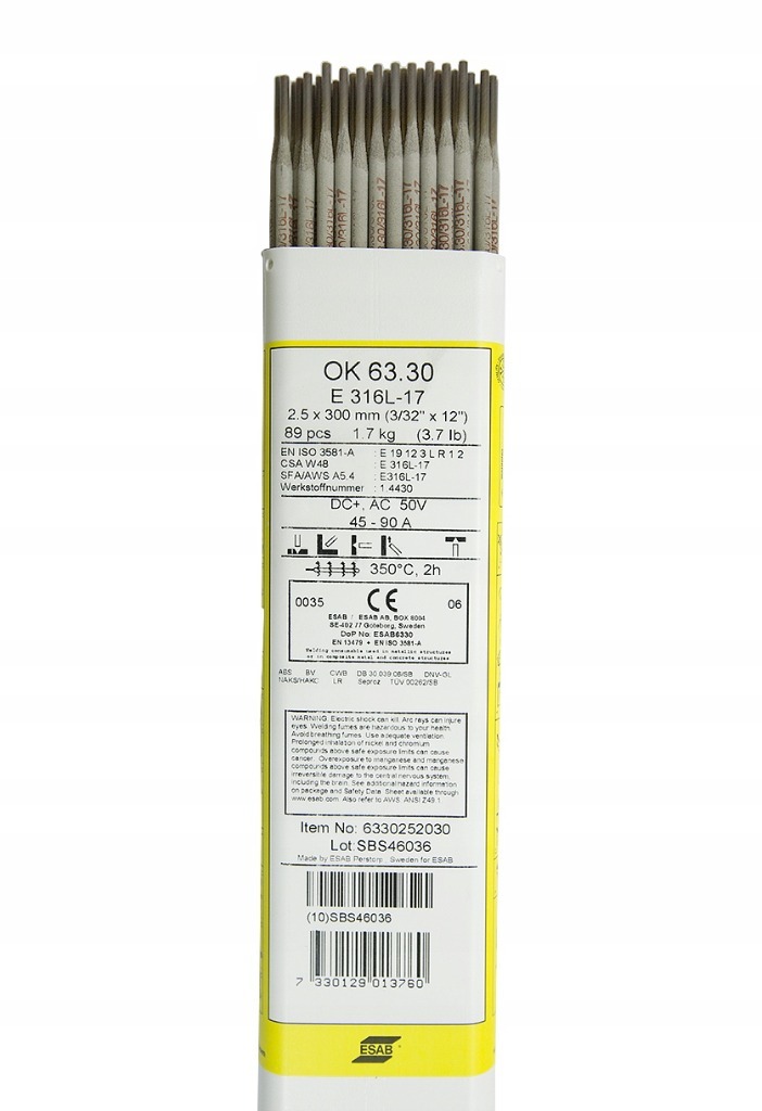 Esab OK 63.30 316L Stainless Steel Welding Rod 2.5 x 300mm Electrode Esab Ok 63.30 Also suitable for welding stabilised. Also suitable for welding of stabilized stainless steels of similar. Also suitable for welding of stabilized. ok 63.30 est une électrode à très bas carbone du type 18cr12ni2,8mo pour le soudage des aciers stabilisés de. Austenitische, kernstablegierte stabelektrode mit geringem. Also suitable for welding of stabilized. Also suitable for welding of stabilized. esab.com. Electrode Esab Ok 63.30.